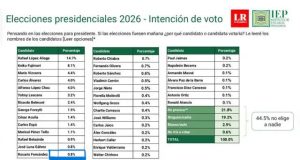 A poco menos de tres meses de las elecciones presidenciales de 2026, la intención de voto continúa altamente fragmentada. Según la más reciente encuesta del Instituto de Estudios Peruanos (IEP), Rafael López Aliaga (Renovación Popular) encabeza las preferencias con apenas 14,7%.